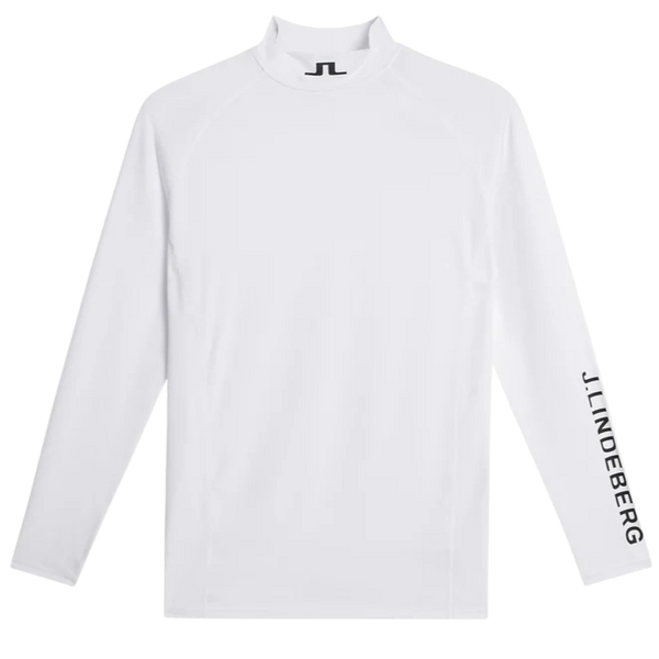 Den smale passformen, høye halsen og raglanermene gir full bevegelighet og et moderne, atletisk uttrykk. Designet er gjennomført med Bridge-logoer på bryst og krage, samt J.Lindeberg-merke på ermet – subtile detaljer som løfter helheten og gjør plagget like stilig som det er funksjonelt.