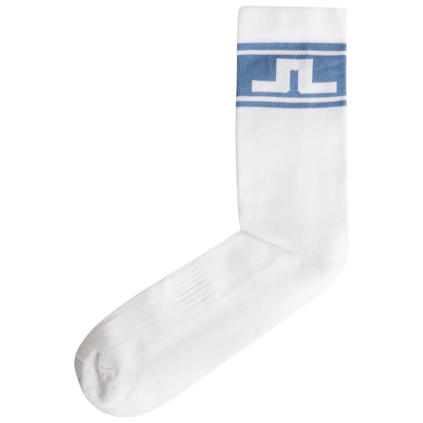 Den øvre delen av sokken har en meshstrikket konstruksjon, som sørger for økt ventilasjon og holder føttene svale gjennom hele dagen. Sokken er designet med jacquardvevd Bridge-logo og kontraststripe, samt en diskret J.Lindeberg-logo langs siden – en detaljrik finish som gir et stilig, men avslappet uttrykk.